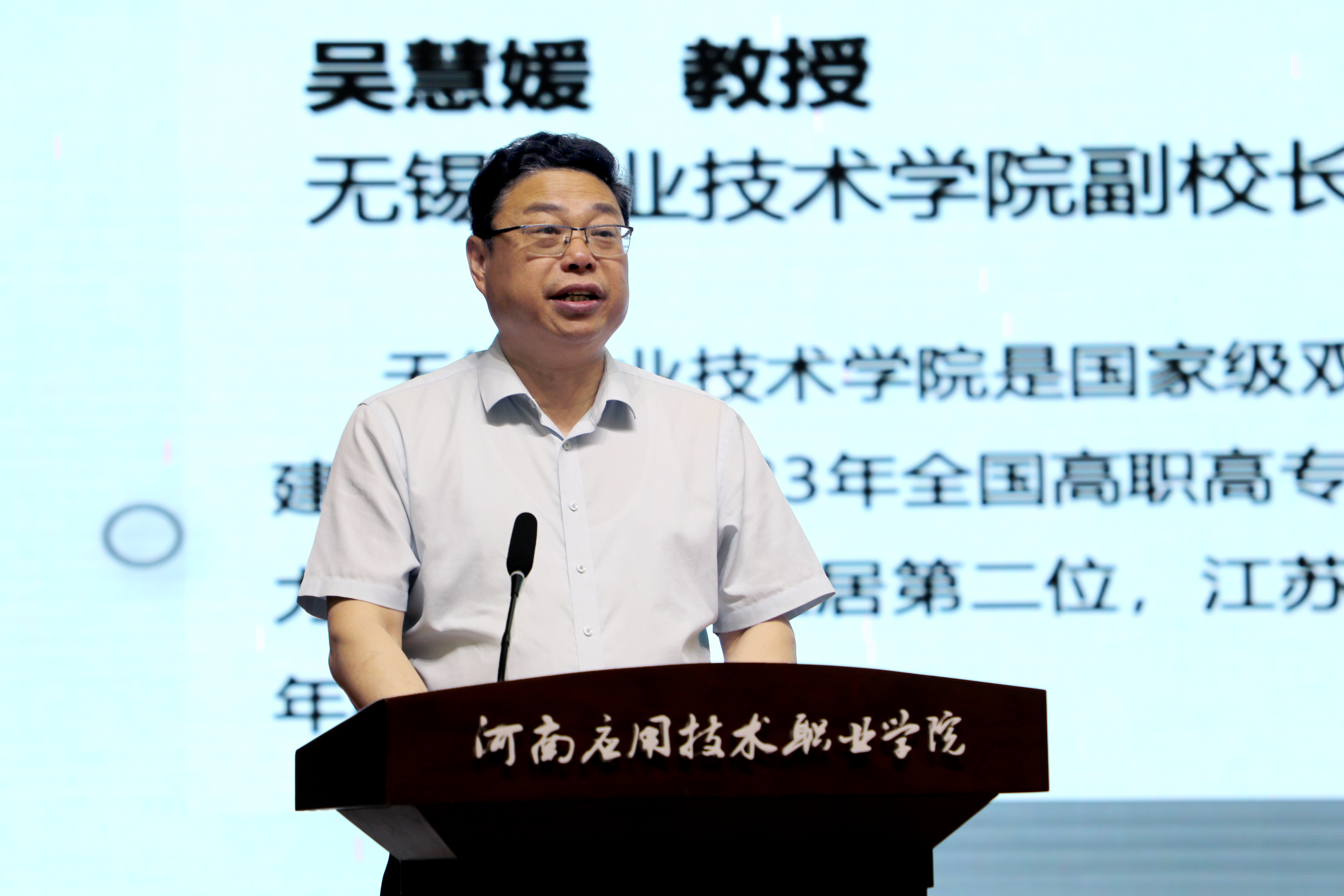报告会上,吴慧媛教授以《“双高”建设促进学校高质量发展》为题,分析当前我国职业教育所面临的机遇与挑战,从“双高计划”建设内容、绩效评价、实施措施,高质量发展路径等几个方面,阐释了无锡职业技术学院“双高计划”的建设思路、重点任务和发展实践。报告内容贴近实际、站位前沿、逻辑清晰,案例鲜活有特色,传递无锡职业技术学院“双高”建设成功经验,对于推动我校“双高”建设具有很强的针对性和操作性,对进一步提升学校“双高”建设成效、开展好“双高”绩效评价、推进学校高质量发展具有很好的指导意义。