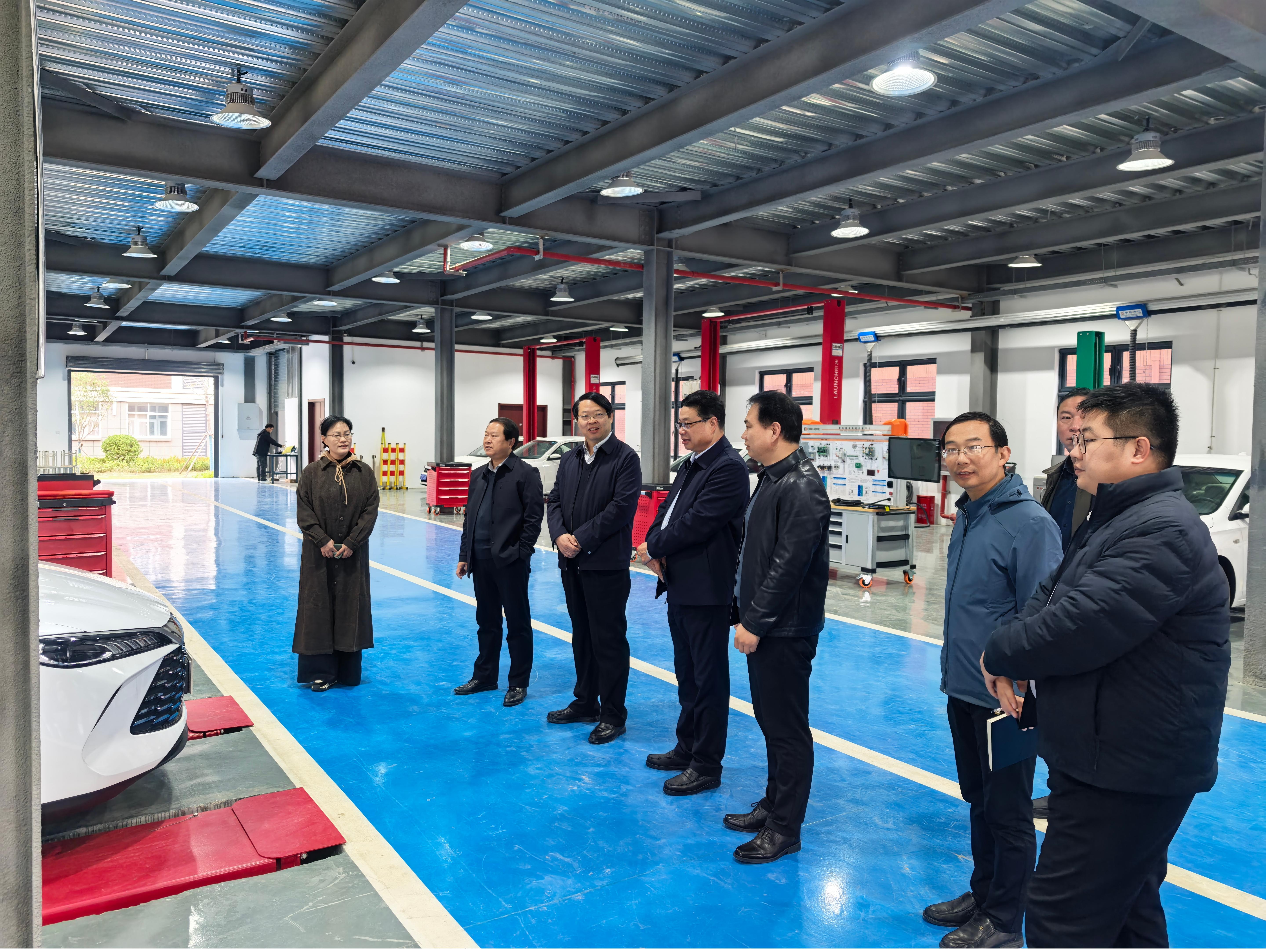 在新能源与智能汽车学院实训中心,闫俊山详细察看场地布局与设备状况,重点了解了设备运行稳定性、教学内容匹配度、日常教学实施等情况,并与现场实训的师生亲切交流,叮嘱师生要时刻强化安全规范意识,确保实训教学安全有序。