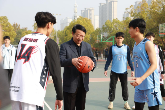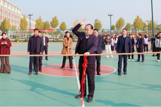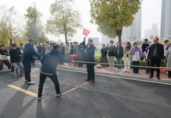 开幕式后,两校区赛事战幕同步拉开。闫俊山、薄新党分别为拔河比赛鸣哨、篮球联赛开球,现场氛围热烈,激情昂扬。