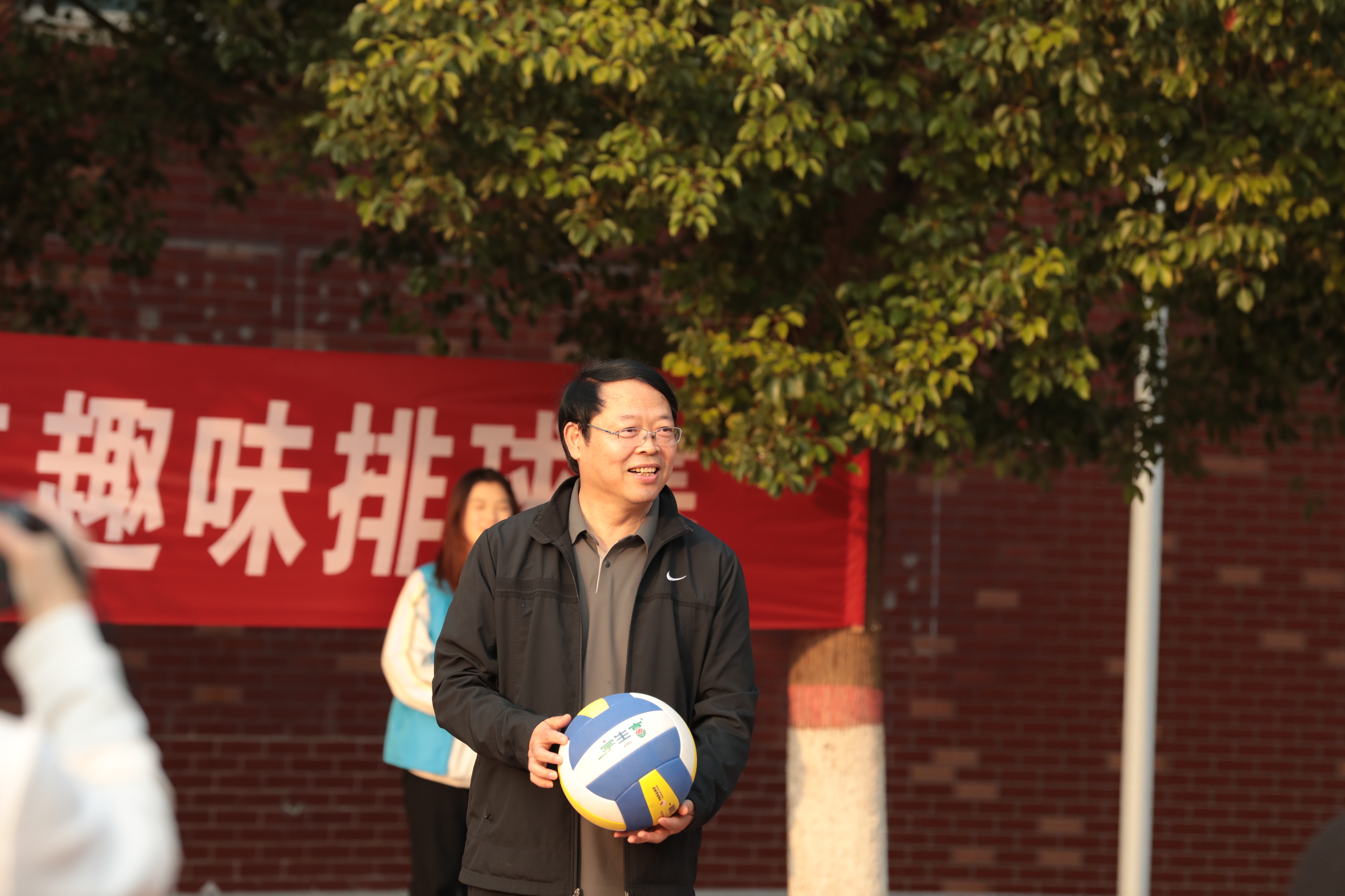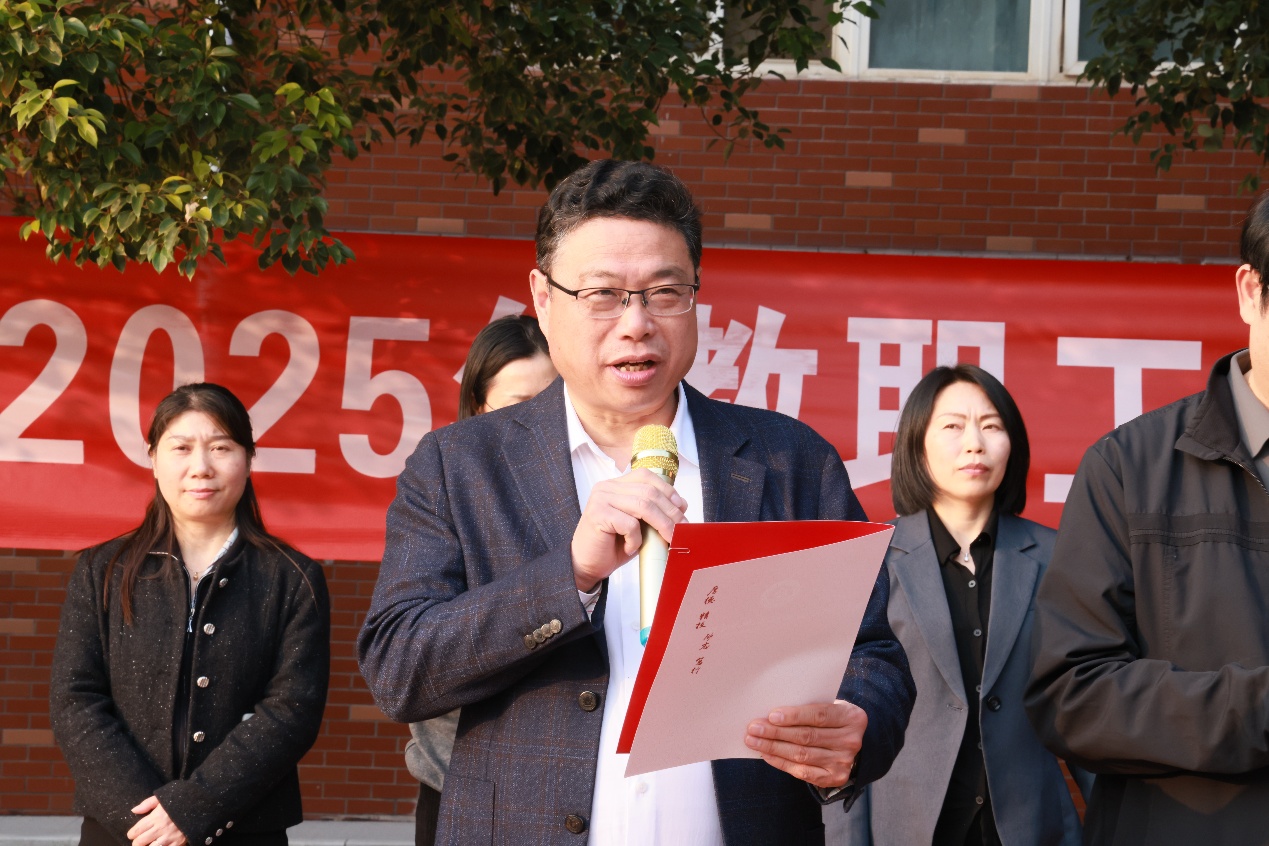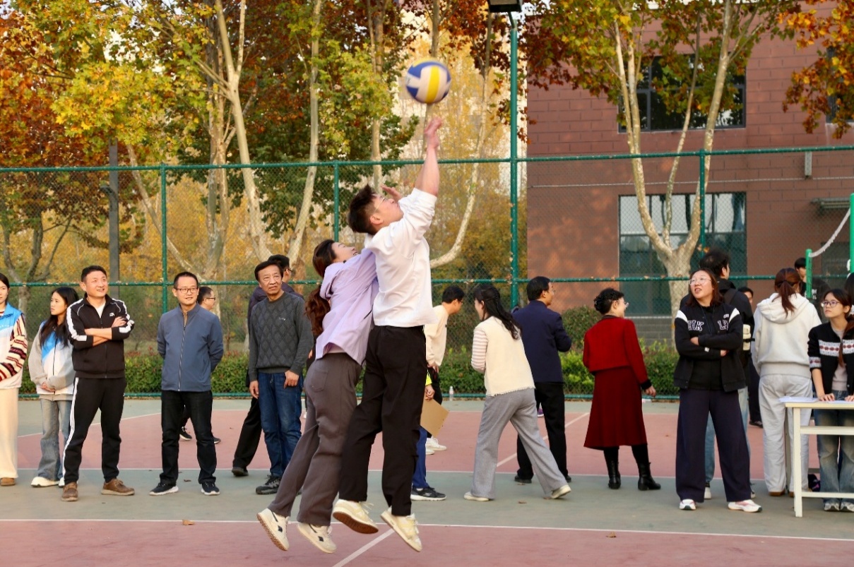 陈君丽在致辞中表示,排球比赛不仅是一场体育赛事,更是增进教职工情感交流、凝聚校园向心力的重要平台,希望大家在运动中释放压力,在协作中收获快乐,以更饱满的热情投入到以后的教育教学工作中。随后,闫俊山宣布比赛开幕,并和常新中分别为两校区赛事开球。
