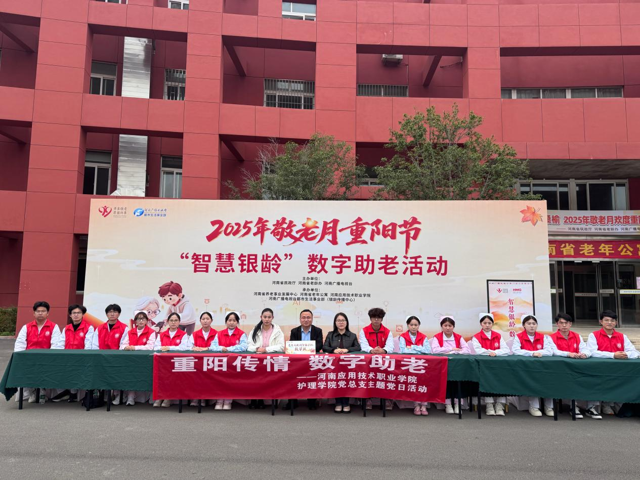 “桂香漫城添暖意,指尖传技润银铃”。10 月 28 日至 29 日重阳节来临之际,由河南省民政厅、河南省老龄办与河南广播电视台联合主办的第三届大象敬老节,分别在郑州市五一公园、河南省老年公寓温情启幕。康养护理学院师生志愿者组成的 “智慧助老服务队” 全程参与,以 “智慧银龄,数字助老” 为主题,手把手教老年朋友玩转智能手机,让科技红利跨越 “数字鸿沟”,为敬老节注入青春暖流。