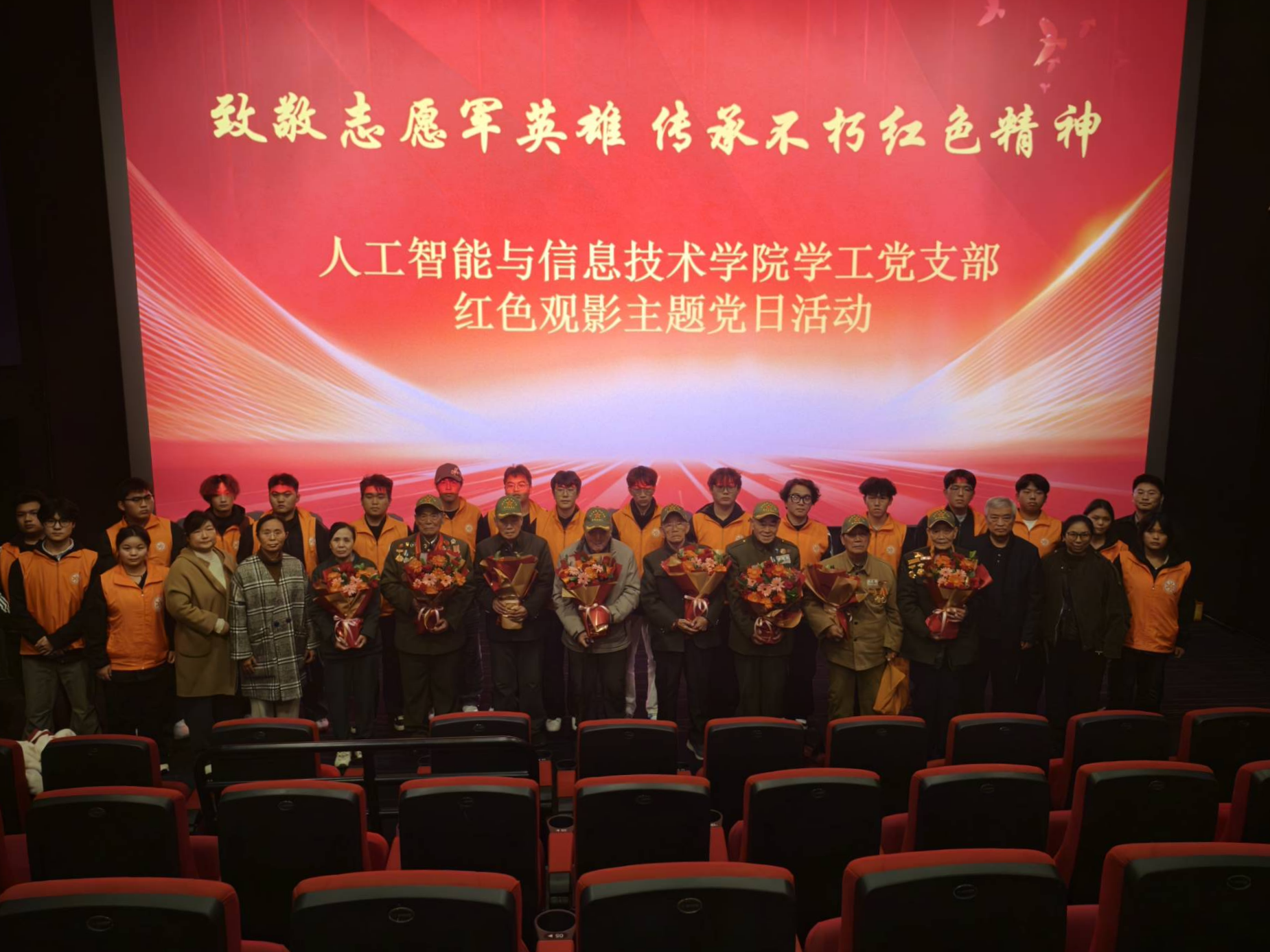 为深入学习贯彻习近平新时代中国特色社会主义思想,弘扬伟大抗美援朝精神,近日,人工智能与信息技术学院学工党支部组织部分党员和入党积极分子,邀请志愿军老战士一同前往开封万达影城开展红色观影主题党日活动。