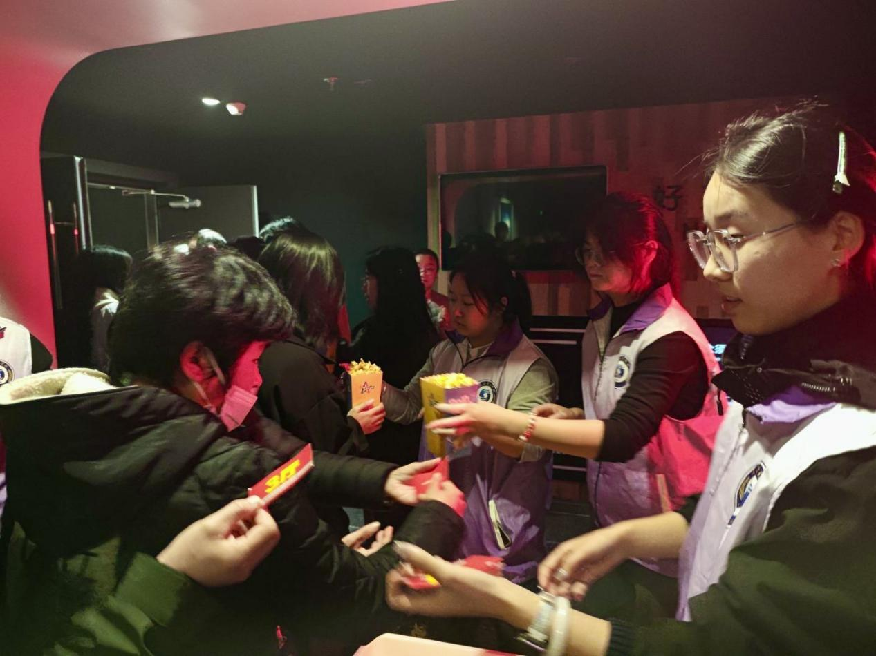 活动前,党支部成员带着慰问水果提前到达现场并做好分发工作。经济管理学院党总支书记王倩与活动负责人交流沟通现场情况。在影院门口,志愿者们为听障人士分发电影券、爆米花并组织有序入场。电影开始之后,志愿者们与听障人士一起观看影片《震耳欲聋》,共同感受无声世界的抗争与坚守。聋人可以发声,正义震耳欲聋,通过无声陪伴共同观影,大家进一步深刻体验听障群体的社会困境、内在力量以及对平等权利的强烈呼唤,表示今后要积极参与无障碍设施完善、信息无障碍推广等公益活动,让“无声”被看见、被重视,共建尊重平等包容的社会氛围。